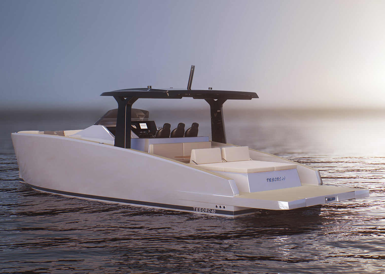 Hereby we present our latest design, the Tesaro T40 Inboard. A luxury yacht with a super tender design. This yacht is perfect for families due to large space for 12 persons. Relax on the sunbeds on the deck or enjoy your dinner at the dinette table.